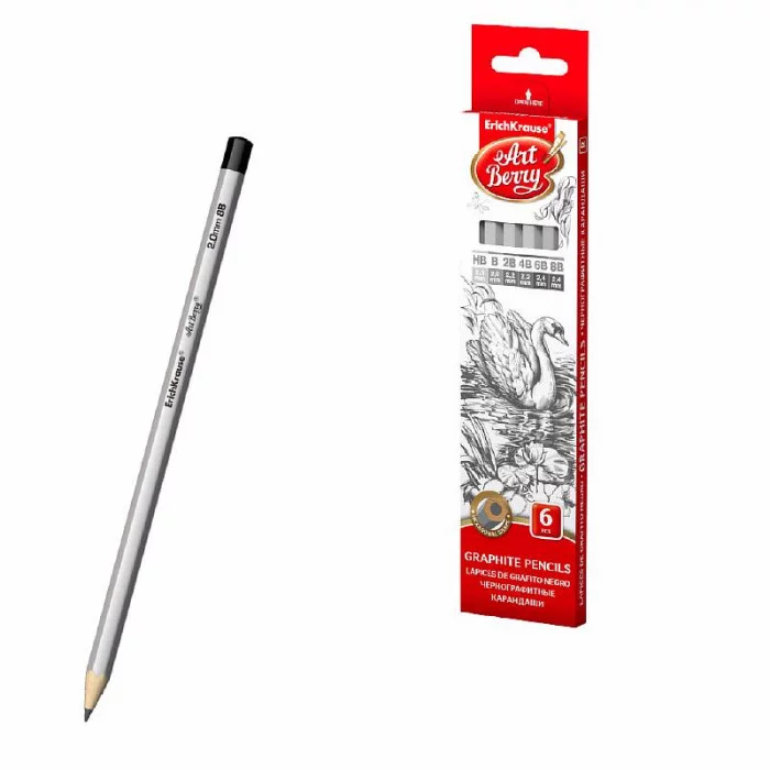 Набор из 6 чернографитных карандашей ArtBerry®, шестигранных, HB, B, 2B, 4B, 6B, 8B 56080