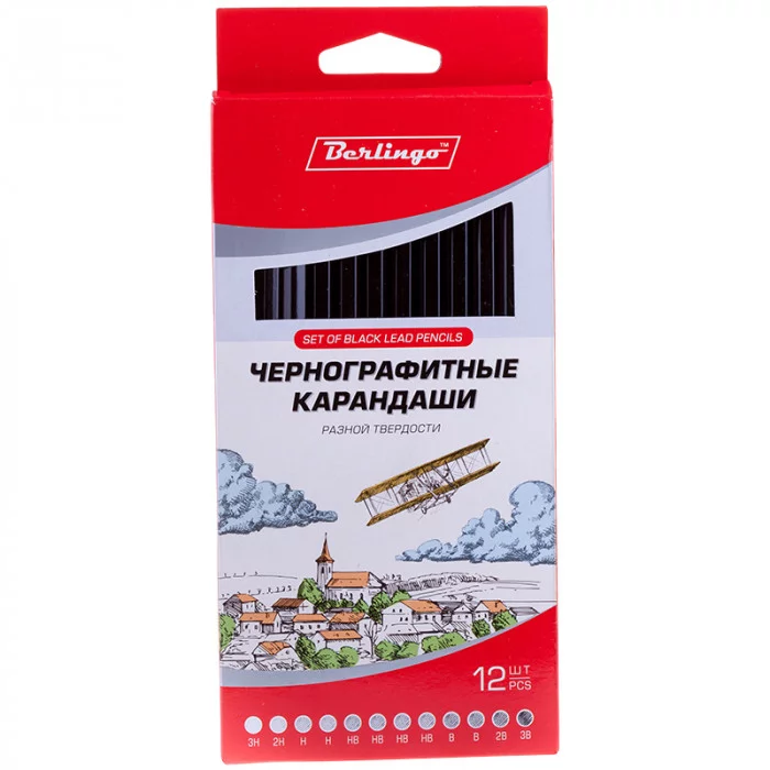 Набор карандашей ч/г Berlingo, 12шт., 3H-3B, заточен., картон. упак., европодвес BERLINGO_ 231867