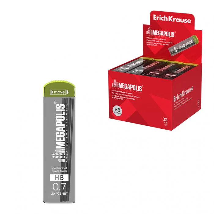 Сменные грифели для механических карандашей. Диаметр - 0.7 мм. Твердость - HB. Грифели подходят к механическому карандашу ErichKrause MEGAPOLIS Concept.