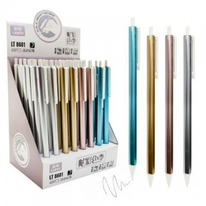 Карандаш-автомат "Металлик" 0.7 пласт. трехгр. корпус, ассорти LT-8601-0.7 388012