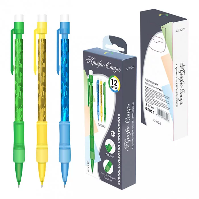 Карандаш-автомат "Профи-Стиль", 0.7мм, пластик, колпачок с ластиком, рез.грип, ассорти TSP3210G-2 Профи-Стиль /1 /12 /144 /1728 326479