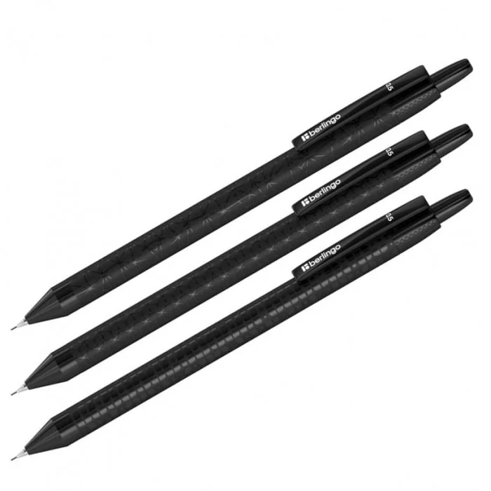 Механический карандаш с дизайном стильной кросс-продуктовой серии DoubleBlack выглядит строго, но оригинально благодаря глянцевому узору на черном матовом фоне. Снабжён двумя запасными грифелями самого популярного диаметра 0,5 мм и встроенным ластиком. Подача грифеля осуществляется с помощью кнопочного механизма.