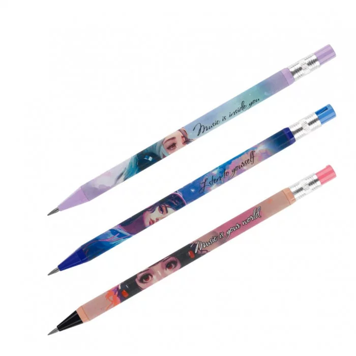 Механический карандаш Kawaii от MESHU — универсальный инструмент для учёбы или творчества. Мотивационные надписи в дизайне корпуса вдохновят фанатов аниме на новые шедевры. Стильные яркие рисунки нанесены при помощи высококачественной термотрансферной печати. Шестигранный пластиковый корпус выполнен в приятном на ощупь покрытии soft-touch. Точилка для грифеля вверху карандаша сделана в виде ластика. Любителям рисовать или делать записи карандашом не придется постоянно его подтачивать. Карандаш удобно брать с собой благодаря тому, что наконечник легко убирается. Он не сломается и не испачкает подкладку пенала. Творчество или учёба станут проще и продуктивнее. Карандаши упакованы в пластиковую тубу по 24 штуки. Набор карандашей состоит из трёх цветов: фиолетовый, розовый и голубой. Диаметр грифеля: 2 мм; Диаметр корпуса: 8 мм; Твёрдость: HB; Длина: 150 мм; Форма корпуса: шестигранная; Цвет корпуса: ассорти;