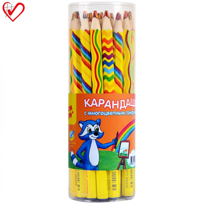 Карандаш с многоцветным супермягким грифелем. Материал - дерево, шестигранный утолщенный корпус. В тубе 3 дизайна ассорти. Для детей старше 3-х лет.