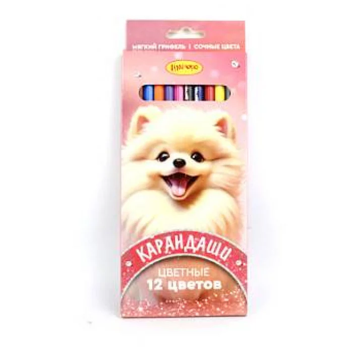 Набор цветных карандашей, 12 цветов. Заточенный грифель диаметром 2,65 мм. Яркие насыщенные цвета. Материал корпуса изготовлен из пластика с лаковым покрытием. Карандаши легко затачиваются. Классический шестигранный корпус, в картонной коробке с европодвесом.