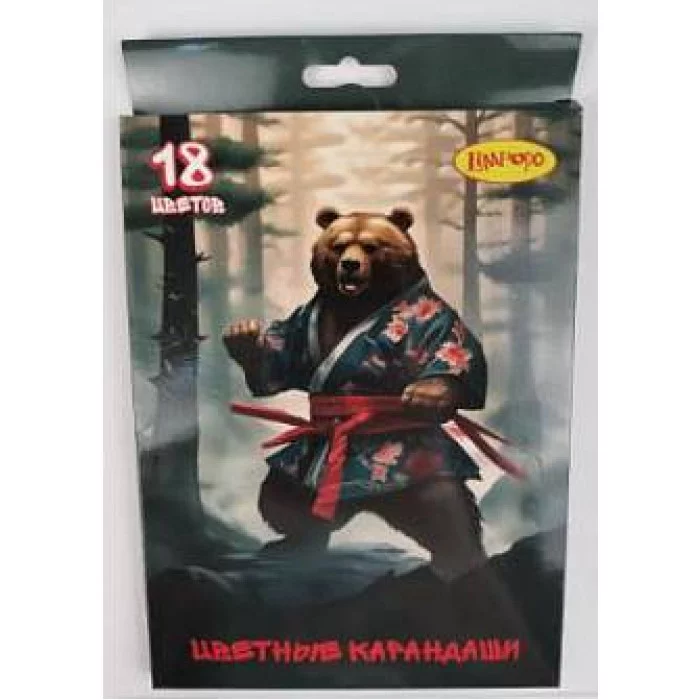 Набор цветных карандашей, 18 цветов. Заточенный грифель диаметром 2,8 мм. Яркие насыщенные палитра цветов. Изготовлены из белого тополя. Корпус покрыт лакокраской в 8 слоев . Легко затачиваются. У карандаша Классический шестигранный корпус. Картонная коробка с европодвесом.