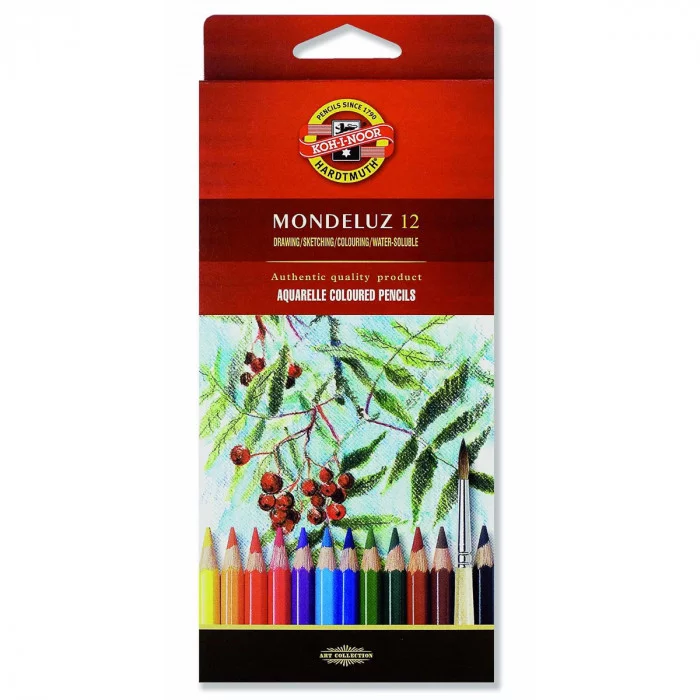 Стержни карандашей изготовлены из прессованной акварели. Это позволяет рисовать ими как простыми карандашами, после чего смоченной в воде кистью размывать нанесенные штрихи. Получаемое изображение похоже на акварельный рисунок. Набор включает 12 цветов. Материал - дерево, классический шестигранный корпус.