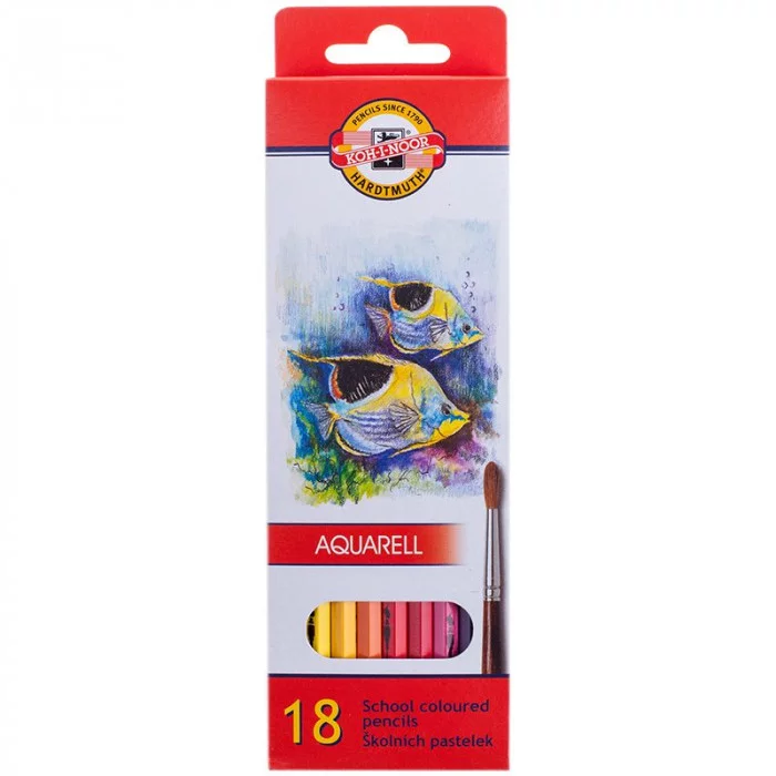Карандаши акварельные Koh-I-Noor "Рыбы", 18цв., заточен., картон, европодвес 233767