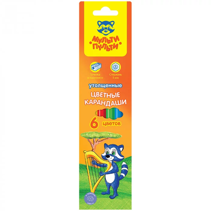 Карандаши Мульти-Пульти "Енот в саванне", 06цв., утолщенные, заточен., с точилкой Мульти-Пульти 240115