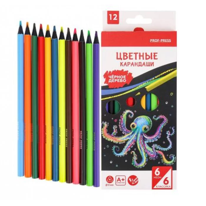Цветные неоновые и классические карандаши — это друзья детства каждого ребенка! Они не только помогают развитию мелкой моторики, но и способствуют выражению своих эмоций через рисунок! Яркие насыщенные цвета и качество — всё, что нужно для красивого рисунка и хорошего настроения! Цветные карандаши представлены в наборе из 12 цветов. Диаметр: 3 мм. Твердость: 2М. Упаковка: картонная коробка.