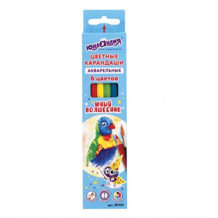 Карандаши цветные акварельные ЮНЛАНДИЯ "ЮНЫЙ ВОЛШЕБНИК", 6 цветов, шестигранные, заточенные, 181401