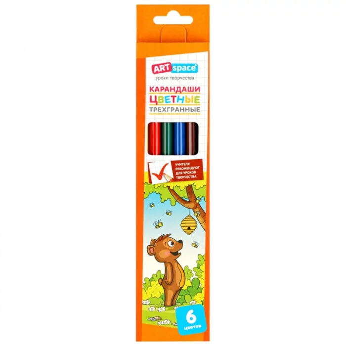 Трехгранные цветные карандаши с удобной и эргономичной формой корпуса. Карандаши легко затачиваются. Яркие цвета и мягкий грифель. Упакованы в картонную коробку с европодвесом.
