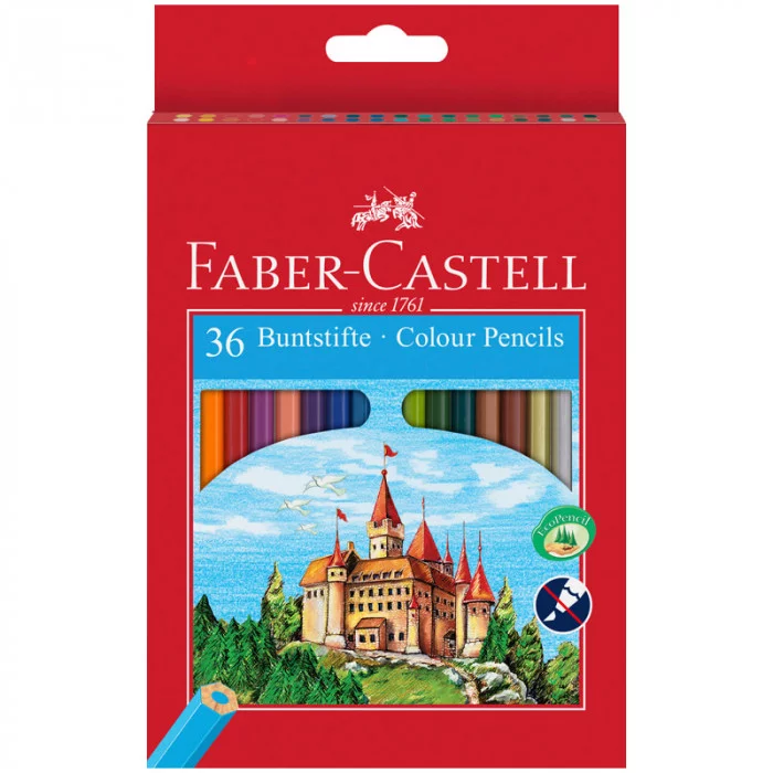 Набор цветных карандашей шестигранной формы серии «Замок» от легендарного немецкого производителя Faber-Castell. Карандаши выполнены в шестигранном корпусе из прочного дерева. Грифель карандашей состоит из высококачественных пигментов ярких оттенков. Мягкость грифеля обеспечивает легкое скольжение и комфортное рисование на бумаге любого типа. Благодаря специальной технологии крепления грифеля (SV), грифель не ломается при падении и затачивании. Карандаши покрыты лаком на водной основе, бережным по отношению к окружающей среде и здоровью детей. Отстирываются с большинства тканей. Карандаши Faber-Castell имеют международные сертификаты FSC и EN 71, гарантирующие экологичность и безопасность использования детьми.