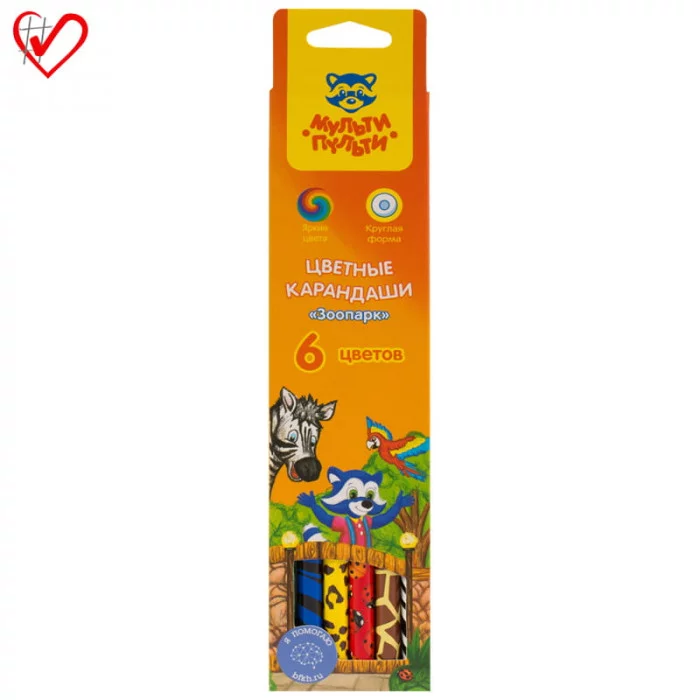 Карандаши цветные Мульти-Пульти "Зоопарк", 06цв., рисунок на корпусе, заточен., картон, европодвес Мульти-Пульти 274094