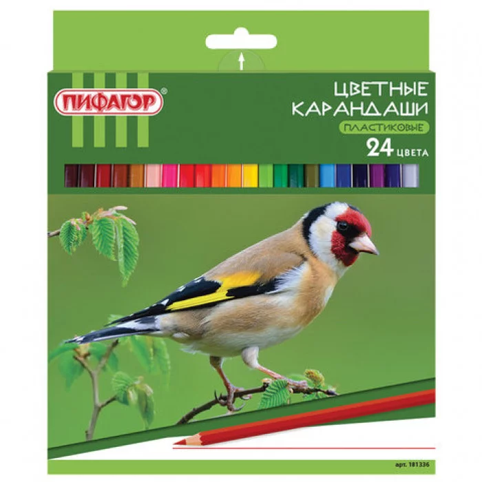 Карандаши цветные ПИФАГОР "ЛЕСНЫЕ ЖИТЕЛИ", 24 цвета, пластиковые, классические заточенные, 181336