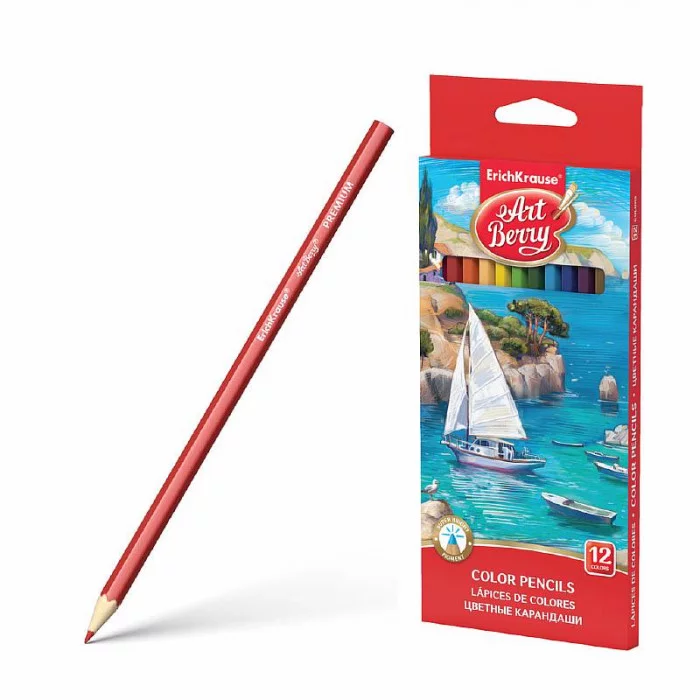 Цветные карандаши деревянные ArtBerry® Premium шестигранные, грифель 3 мм, 12 цветов 32482
