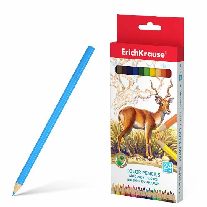 Цветные карандаши деревянные ErichKrause трехгранные, грифель 3 мм, 24 цвета 49888