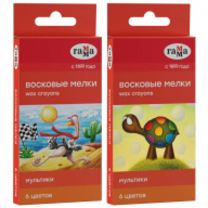 Набор из 6 ярких цветных восковых мелков ГАММА серии «Мультики» отлично подойдёт для рисования на бумаге, картоне и любой шероховатой поверхности. Мелки имеют круглую форму, длина мелка составляет 90 мм, а диаметр корпуса — 8 мм. В наборе 6 ярких цветов: жёлтый, зелёный, синий, красный, чёрный, коричневый. Они идеальны для первых начинаний ребенка в рисовании и раскрашивании, так как они удобно лежат в руке. Мелки производятся на основе натуральных растительных компонентов: воска и пигментов. Мелки не липнут к рукам и не пачкают их, не имеют выраженного химического запаха. Каждый мелок обёрнут в бумажную гильзу и уже заточен. Набор упакован в яркую картонную коробку с мультяшными героями, которая особенно понравится ребёнку. Количество цветов: 6; Количество штук: 6; Форма: круглая; Длина мелка: 90 мм; Диаметр мелка: 8 мм