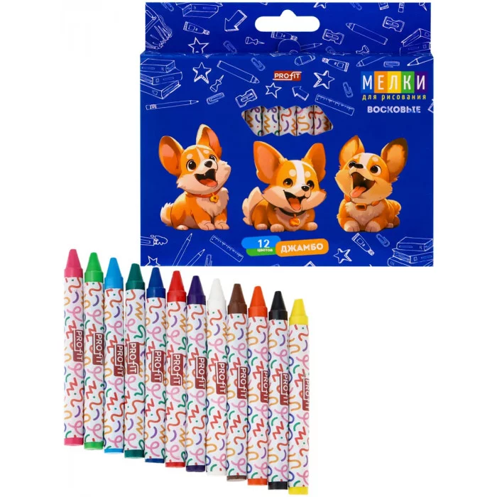Набор восковых мелков Джамбо для дет.твор. КОРОЛЕВСКИЕ КОРГИ (ШМ-4528)12цв TM "Profit" ШМ-4528