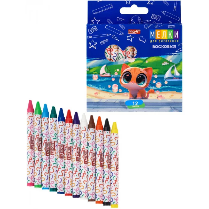 Набор восковых мелков СМЫШЛЁНЫЙ КОТЁНОК 12цв TM "Profit" ШМ-4521