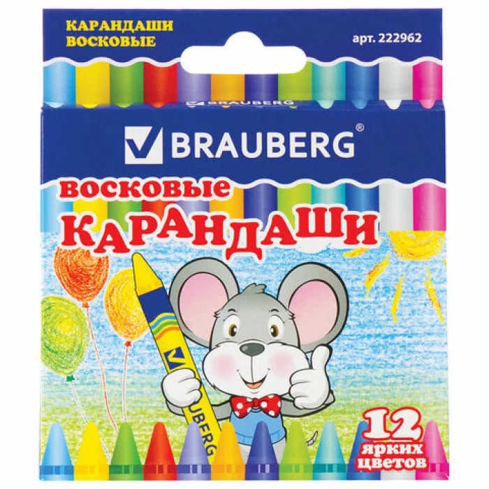 Восковые мелки BRAUBERG идеально подходят для детского творчества. Предназначены для рисования на бумаге любого типа, а также дереве, картоне и стекле. Не пачкают руки, благодаря индивидуальной бумажной обертке каждого карандаша. Палитра состоит из 12 ярких и насыщенных цветов. Полностью безопасны в использовании, не токсичны и не имеют резкого запаха. Благодаря своему составу мелки пишут мягко, и ребенку не придется прикладывать усилия в процессе рисования. Круглая форма корпуса и диаметр 8 мм. делают их удобными для тренировки руки к письму у дошкольников и детей младшего школьного возраста, формируют навык правильного захвата, снижают нагрузку на кисти рук. Каждый мелок завернут в бумажную этикетку, что предохраняет от загрязнений, снижает скольжение, увеличивает прочность. Восковые мелки упакованы в картонную коробку с европодвесом. Тип основы: восковая основа. Количество цветов в наборе: 12 шт.. Форма корпуса: круглая. Диаметр: 8 мм. Серия: Зверята. Бумажное покрытие корпуса: да. Упаковка: картонная с ев