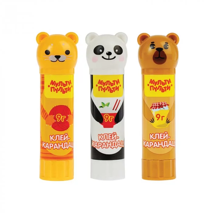 Клей-карандаш Мульти-Пульти "Зверята: Кот, Мишка, Панда", 09г, колпачок в форме животного, ПВП 305043