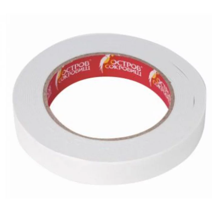 Клейкая двухсторонняя лента 19 мм х 5 м, НА ВСПЕНЕННОЙ ОСНОВЕ 1 мм, прочная, ОСТРОВ СОКРОВИЩ, 606420