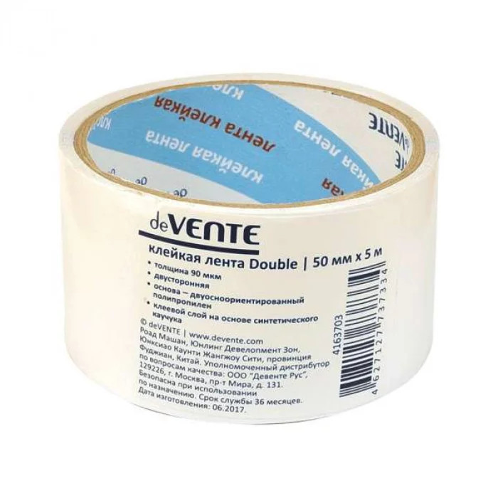 Клейкая лента двусторонняя "deVENTE" полипропиленовая основа 90 мкм, 50 ммx5 м, картонная втулка, индивидуальная маркировка