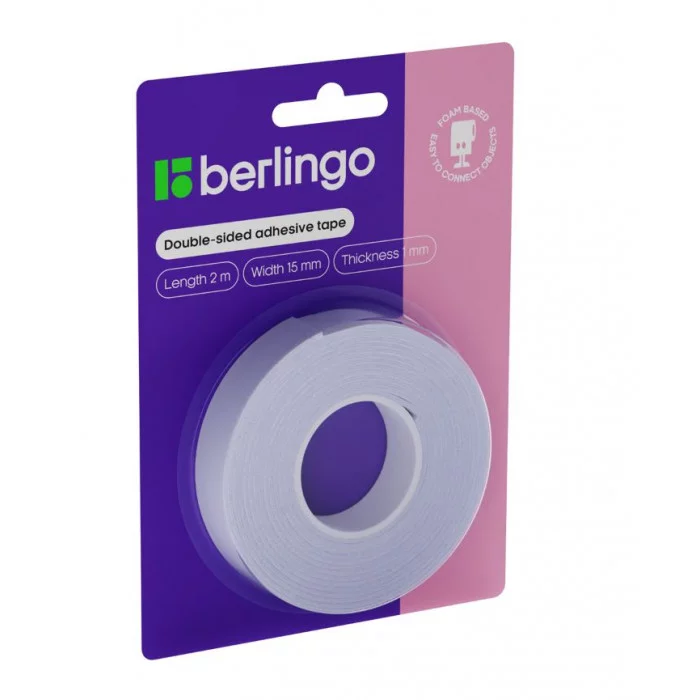 Клейкая лента двусторонняя Berlingo, 15мм*2м, на вспененной основе, 1мм, блистер 268413