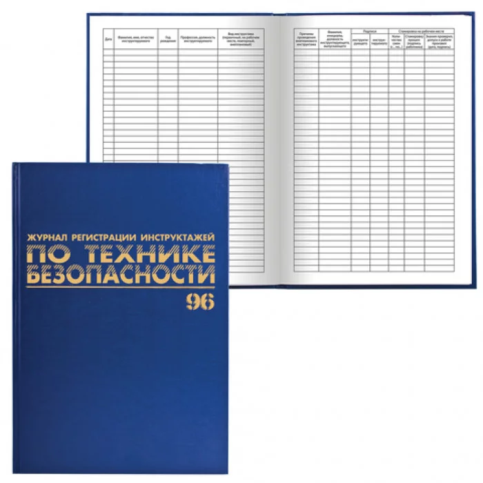 Книга BRAUBERG "Журнал регистрации инструктажей по ТБ", 96л, А4 200*290мм, бумвинил, фольга, офсет