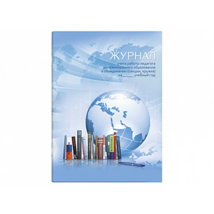 Журнал учета работы педагога дополнительного образования 20 л. арт. 62918 ГЛОБУС /А4, газетная бумага, мягкий переплёт (2 скобы), облож.- мелованная бумага 130 г/м?. Цвет голубой