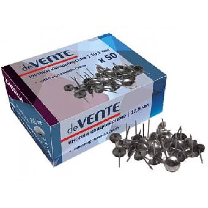 Кнопки канцелярские "deVENTE" диаметр 9 мм, никелированные 50 шт в картонной коробке