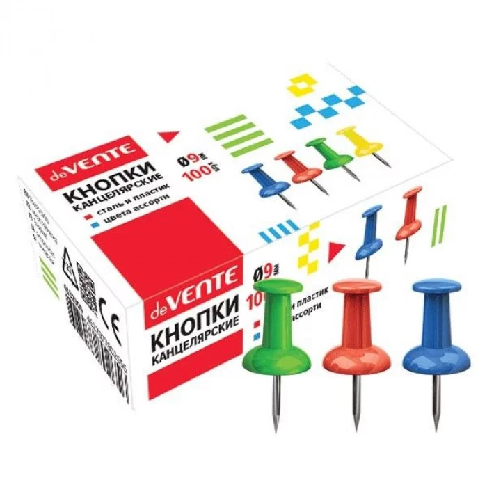 Кнопки силовые 100шт/уп цветные карт упак DEVENTE 4132309 383636