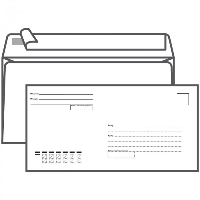 Конверт E65, Ряжская печатная фабрика, 110*220мм, с подсказом, б/окна, отр. лента 070634