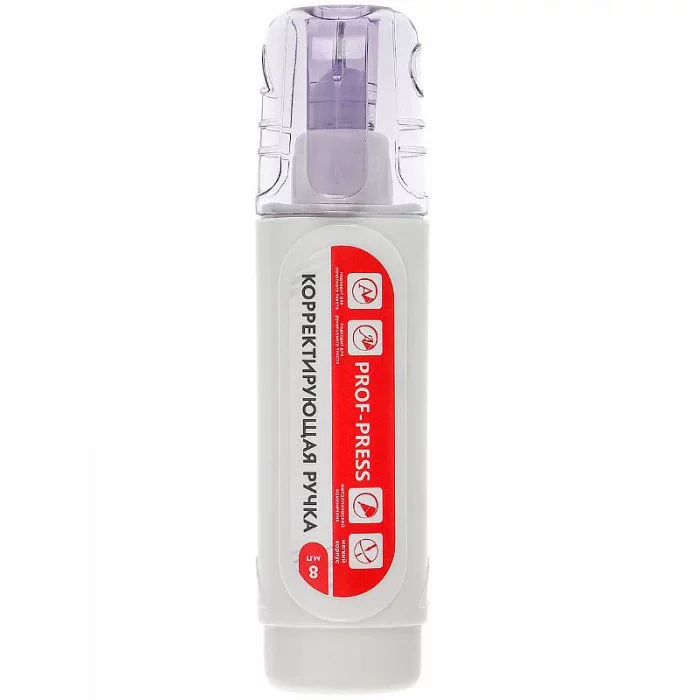 Корректирующая ручка поможет исправить любые неточности в любой письменной работе. Подходит для печатного и рукописного текста. Имеет металлический наконечник, быстро сохнет. Мягкий корпус служит для лёгкости использования и дозированной подачи. Объём: 8 мл.