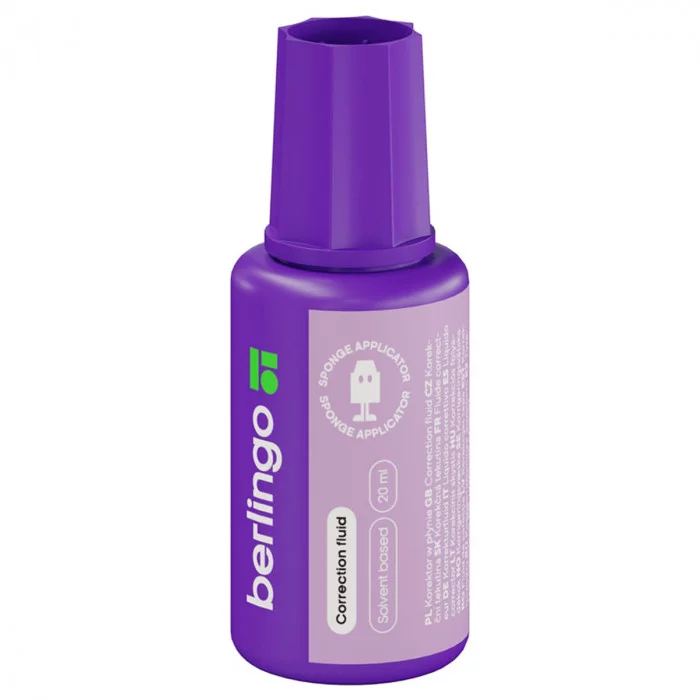 Корректирующая жидкость Berlingo, 20мл, на химической основе, с губчатым аппликатором 256293