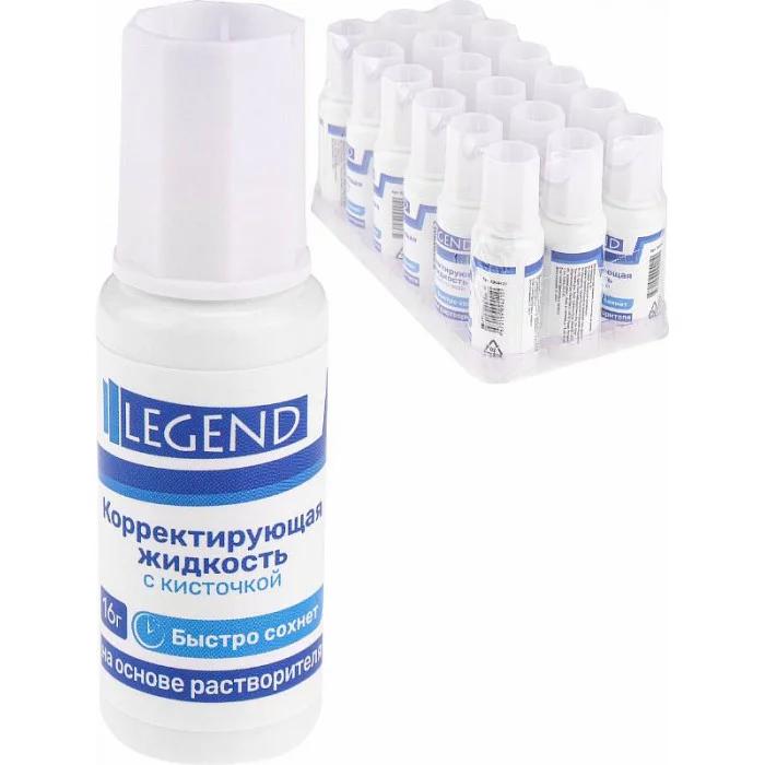 Корректирующая жидкость (КЖ-9421) 16гр, 8мл, с кисточкой на основе растворителя ТМ"Legend" КЖ-9421