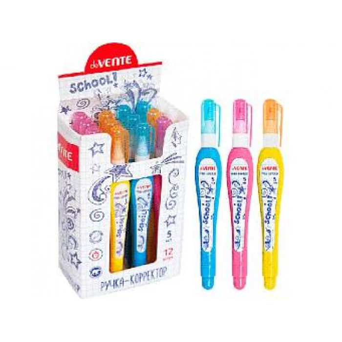 Ручка-корректор "deVENTE. School" 05 мл, быстросохнущая, укрывистая, для школьных тетрадей, трубчатая система подачи, цвета корпуса ассорти, в картонном дисплее с пластиковым поддоном