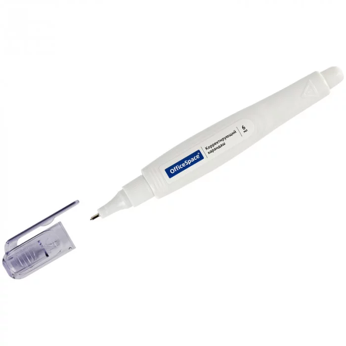 Корректирующий карандаш OfficeSpace с металлическим наконечником. Идеален для использования в процессе работы или учёбы. Объём – 6 мл. Точное нанесение. Встряхнуть перед применением, плотно закрыть колпачок после использования. Вид товара: корректирующий карандаш; Объём: 6 мл; Тип подачи жидкости: механический; Материал наконечника: металлический.