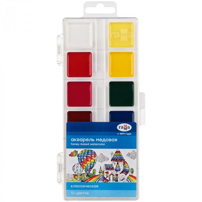 Акварель Гамма "Классическая", медовая, 12 цветов, без кисти, пластик. упак., европодвес NEW 293985