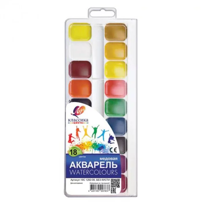 Краски акварельные изготовлены на основе органических пигментов и натурального связующего с добавлением пчелиного мёда. Предназначены для детского творчества и различных живописных работ. Отличаются хорошей прозрачностью, яркостью и чистотой цвета. Количество цветов в наборе: 18. Серия: Классика. Добавка в основу: мед. Отделение для кисточки: да. Форма кюветов: квадратная. Упаковка: пластиковая коробка Бренд - ЛУЧ. Производитель - Россия. Артикул - 19С1292-08. Штрихкод - 4601185007837