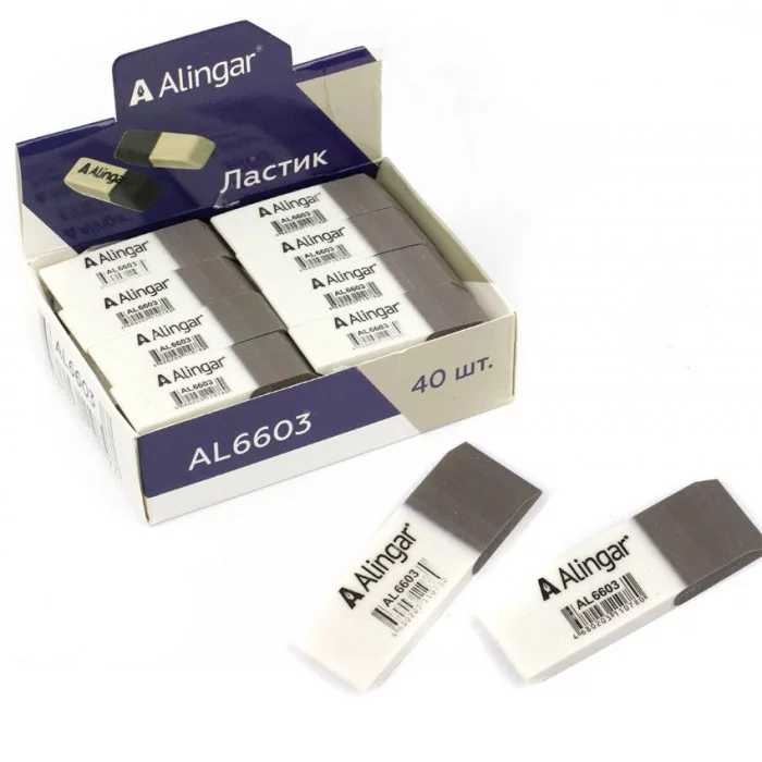 Ластик Alingar, синтетический каучук, прямоугольный, скошенный, бело-серый, 50*15*5 мм, картонная упаковка AL6603