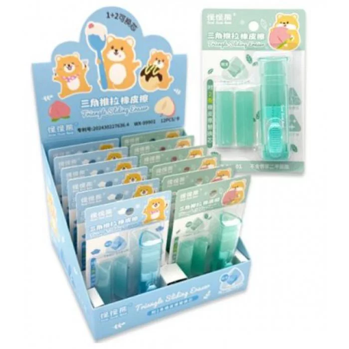 Ластик DI-673 "Выдвижной" 43х12х12мм, трехгранный, 2 запасных ластика, в футляре, ассорти, на блистере WX-99901 326563