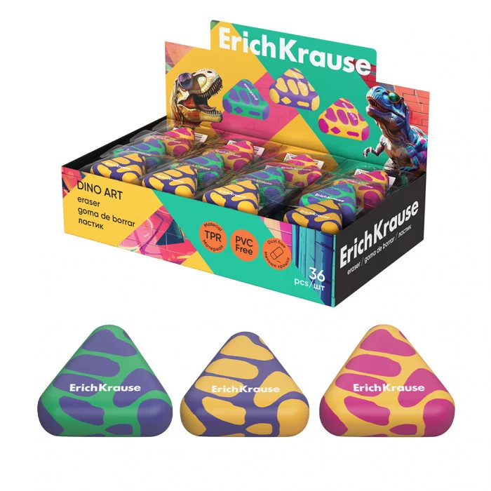 Мягкий ластик треугольной формы из современного, экологически чистого и гипоаллергенного материала термопластичной резины (TPR) с пониженным образованием крошек (Dust free). Не содержит ПВХ. Каждый ластик имеет индивидуальный штрих-код. Размер 28 х 26 х 10 мм.