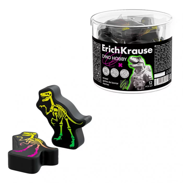 Супермягкий ластик в форме динозавра из современного, экологически чистого и гипоаллергенного материала ECO-PVC. Хорошо удаляет надписи и рисунки, сделанные чернографитным карандашом, не пачкая и не деформируя бумагу. Не содержит фталатов. Каждый ластик имеет индивидуальный штрих-код. Размер 45 x 38.5 x 13.1 мм.