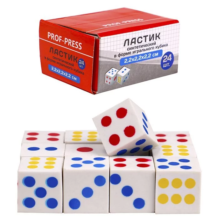 Ластик фигурный.каучук, белый, (ЛС-3353) в форме игрального кубика, ЛС-3353