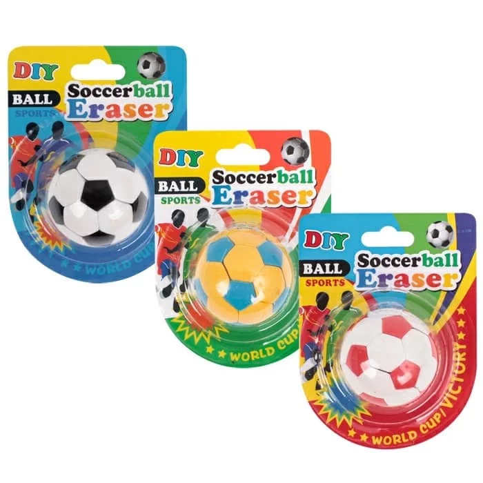 Ластик разборный "Футбольный мяч". Диаметр : 4см. Цвет: ассорти. Упаковка -блистер с европодвесом.8,5*11*4см