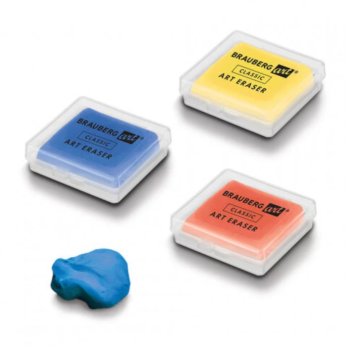 Ластик-клячка художественный цвета ассорти, в футляре, 40x36x10 мм, BRAUBERG ART "CLASSIC", 271155