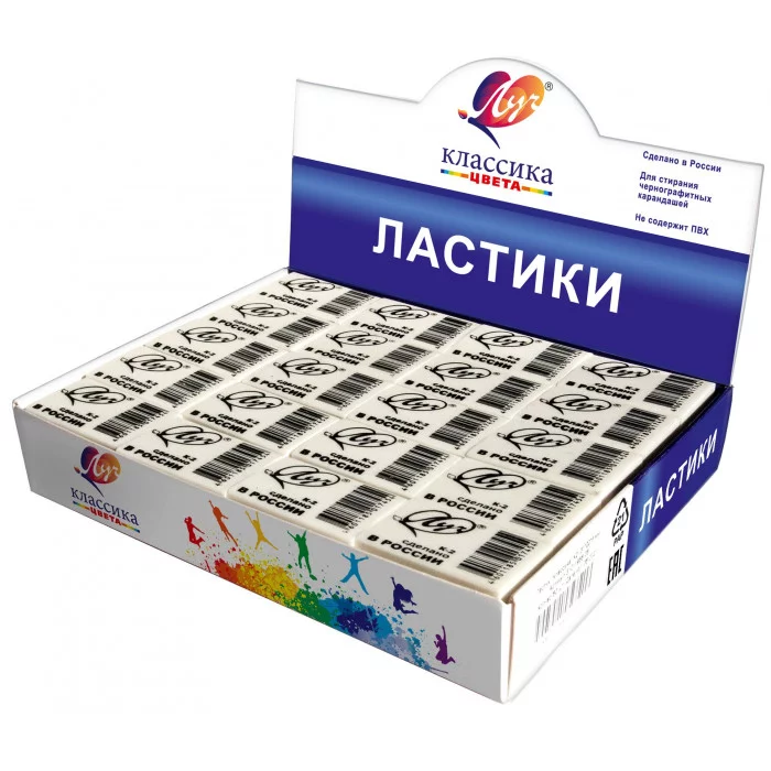 Ластик Луч КЛАССИКА К2 резина 31х22х8 мм прямоугольная белый мягкий индив.штрих-код 228158