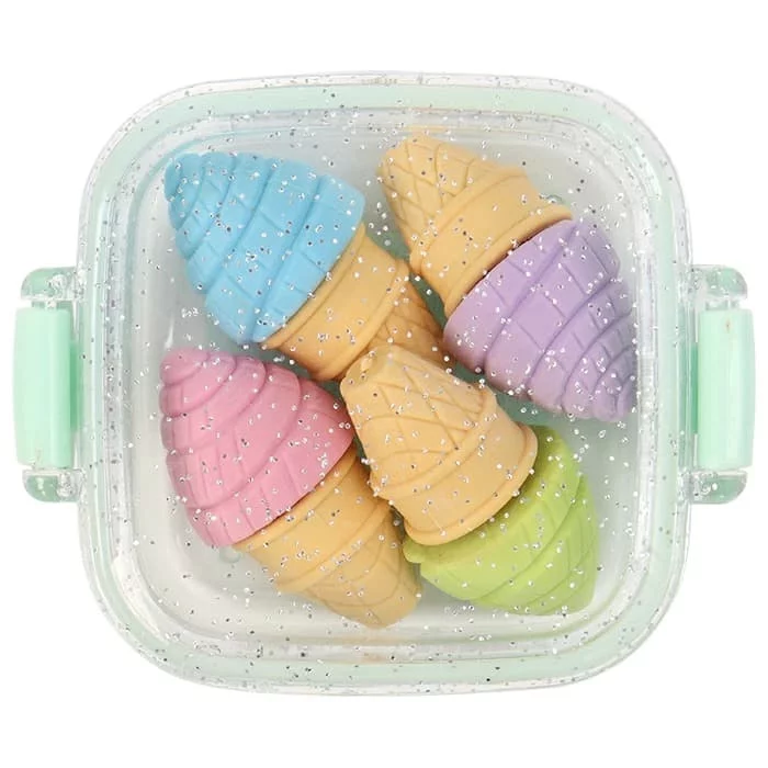 Комплектность : 4 ластика в виде мороженого , контейнер 6,5*8*2,5см.